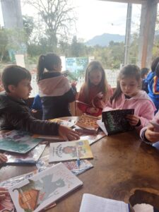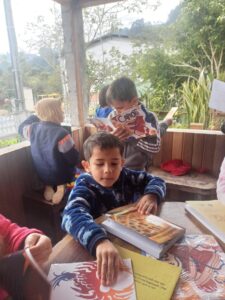 A escritora Loreci Bocate Laguna recebeu, na tarde de ontem, alunos de uma Escola Municipal em sua casa, em Vidal Ramos, SC. Reproduzimos abaixo um pequeno depoimento de Loreci sobre o encontro e algumas fotos que registraram a visita.