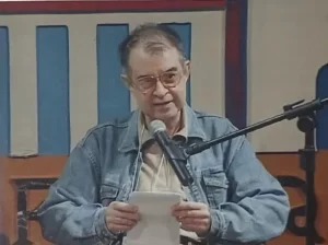 Luiz Vilela lendo um conto seu para o público, na FLIP,