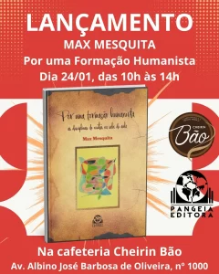 O lançamento nacional em sessão de autógrafos do livro Por uma formação humanista: as disciplinas de exatas em sala de aula, de Max Mesquita, ocorreu anteontem, 24 de janeiro de 2026, no CB to go Barão Geraldo, em Campinas, SP. O livro “amalgama campo empírico, teoria e metodologia de modo irrepreensível, com grande força de sentimentos”, anota a orientadora da pesquisa original, Profa. Nima Spigolon (Unicamp), em texto que está nas orelhas do livro.