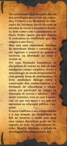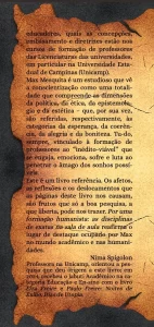 Já o prof. Crispim Antonio Campos (UFSCar), em texto que está na 4a. capa do livro, registra que o livro é “[u]m trabalho que se destaca pela sua densidade [e] pelas inúmeras discussões subsequentes que poderão suscitar doravante”.