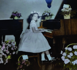 Flávia ao piano aos 8 anos.